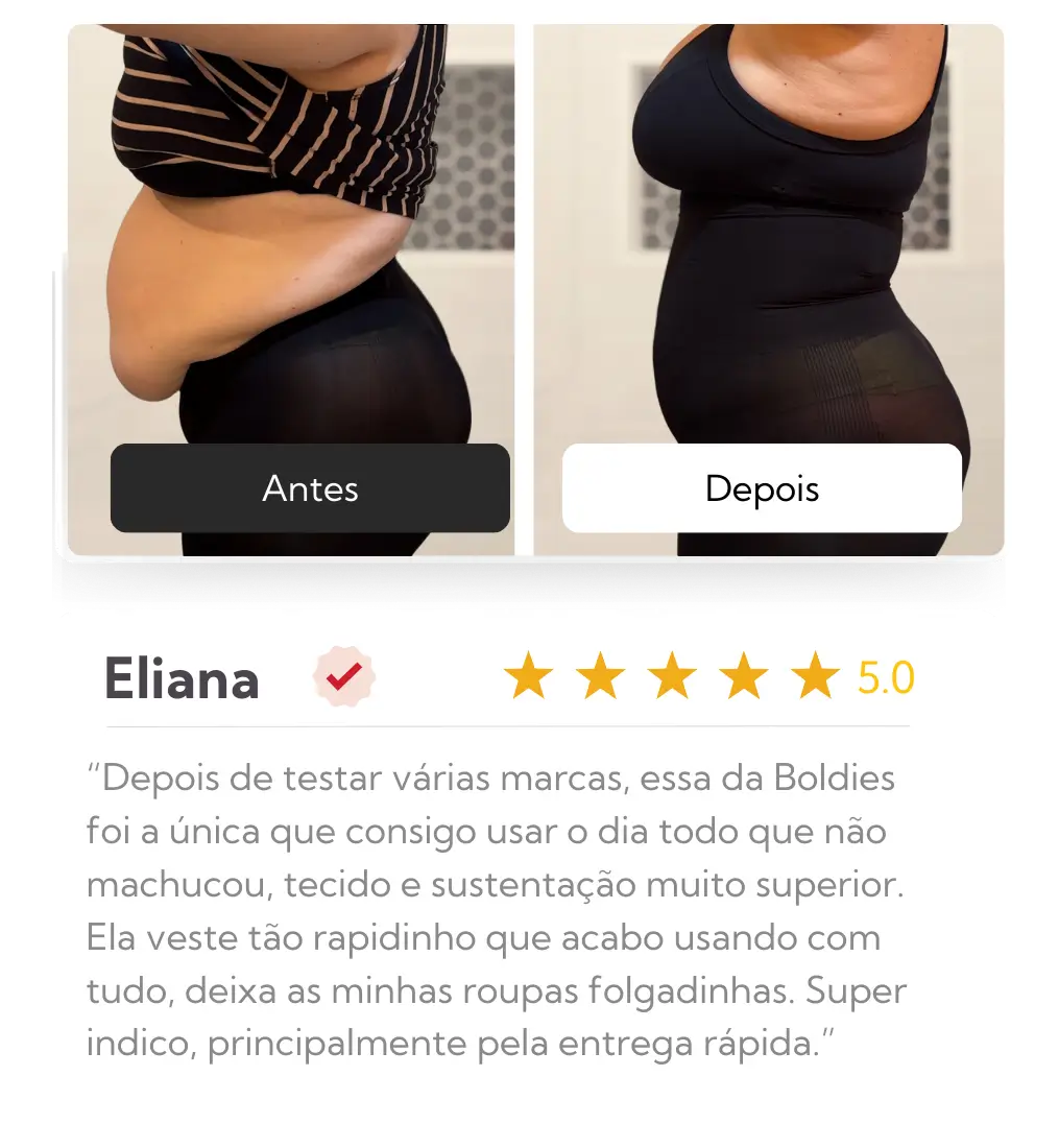 Tecnologia Anatômica com compressão 360º que tonifica o corpo e modela a silhueta, deixando suas roupas larguinhas.