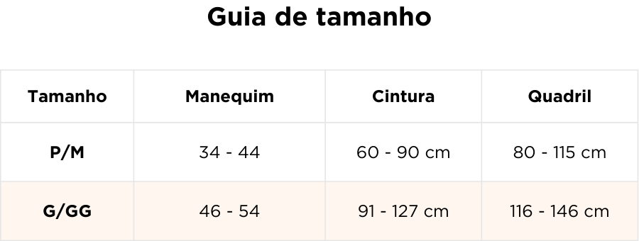 Sabemos que comprar uma cinta online pode trazer dúvidas sobre a escolha do tamanho ideal. Por isso, oferecemos 90 dias de garantia para que você possa comprar sem medo e experimentar sua cinta com tranquilidade.
